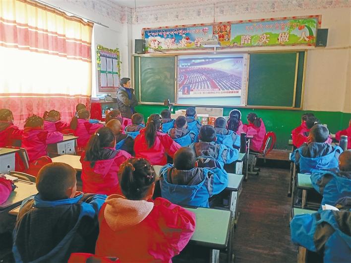圖為昌都市洛隆縣馬利鎮(zhèn)第二小學(xué)師生在收看全國(guó)兩會(huì)盛況。圖片由昌都市洛隆縣馬利鎮(zhèn)第二小學(xué)提供