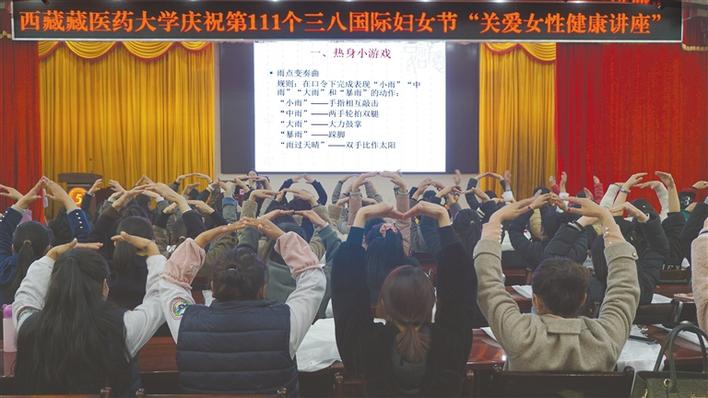 圖為西藏藏醫(yī)藥大學(xué)的女性教職工參加“關(guān)愛(ài)女性健康講座”活動(dòng)現(xiàn)場(chǎng)。