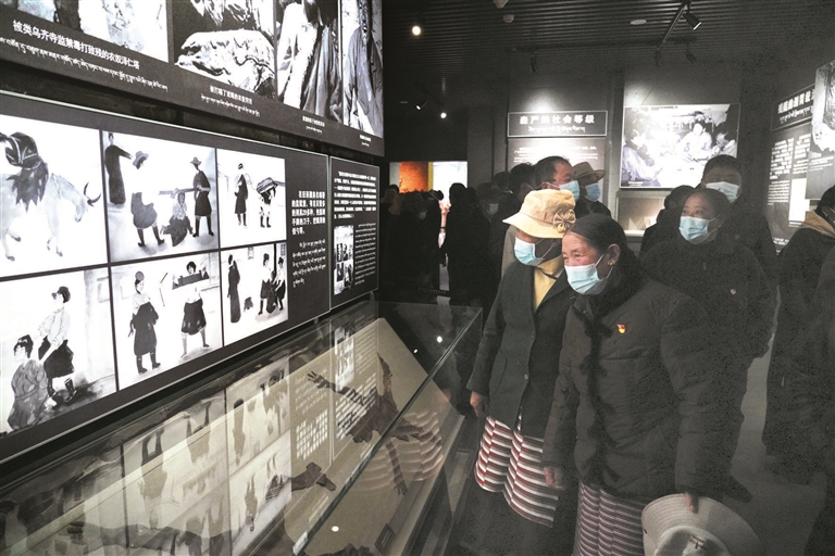 圖為4月7日上午,在西藏百萬(wàn)農(nóng)奴解放紀(jì)念館參觀的堆龍德慶區(qū)基層黨員。 索朗多杰攝