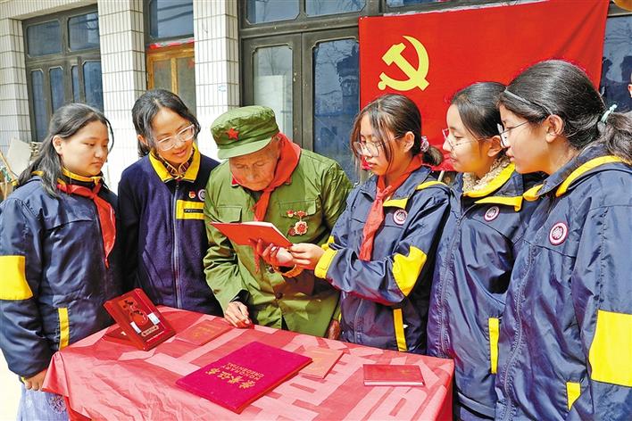 圖為南通西藏民族中學(xué)學(xué)生聽(tīng)老紅軍講革命故事。 圖片由南通西藏民族中學(xué)提供