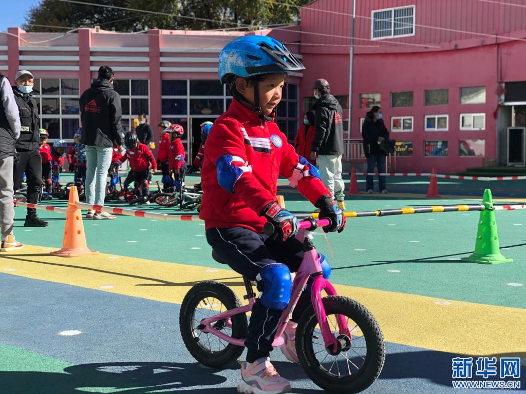 拉薩市實(shí)驗(yàn)幼兒園的孩子正在學(xué)習(xí)騎滑步車(2020年11月17日攝)。 新華社記者 金一清 攝
