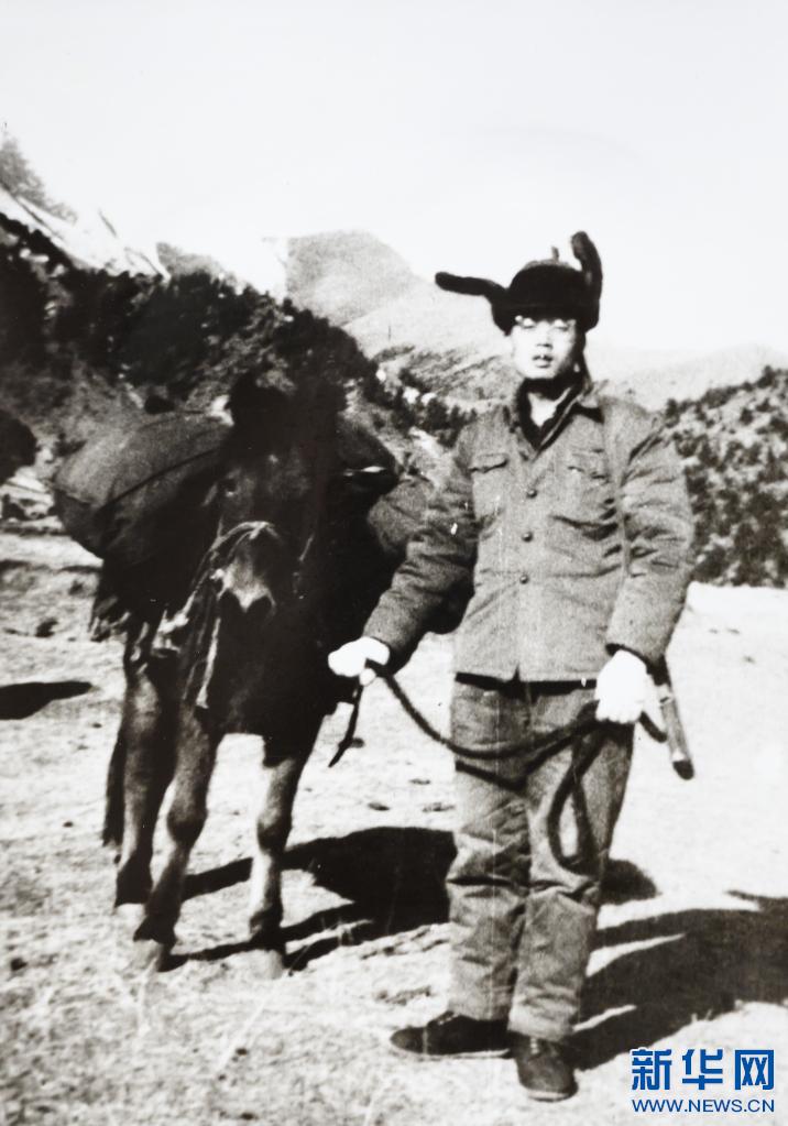 1981年,李純民在西藏昌都類烏齊縣下鄉(xiāng)工作途中(2021年4月21日翻拍)。新華社發(fā)