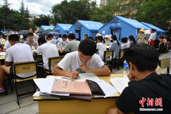 5月22日,云南省大理州漾濞縣漾濞一中的高三學生在露天“教室”備戰(zhàn)高考。5月21日,當地連發(fā)多次地震,最高6.4級。 中新社記者 劉冉陽 攝