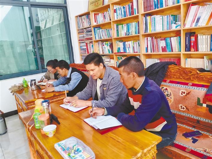 圖為薩迦縣木拉鄉(xiāng)基層工作者通過手機(jī)參與線上“微講堂”培訓(xùn)班學(xué)習(xí)。記者 汪純 攝