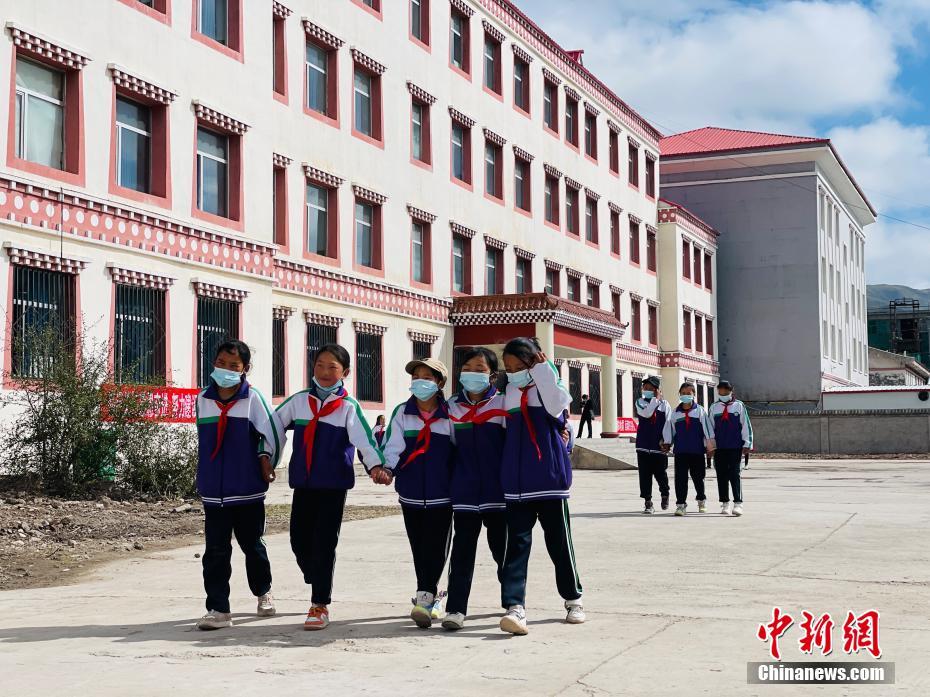 9月1日,青海省果洛藏族自治州瑪多縣地震災(zāi)后過(guò)渡安置一校區(qū)的同學(xué)們迎來(lái)了新學(xué)期。圖為學(xué)生們下課后走出教學(xué)樓。為確保青?,敹嗳h中小學(xué)(幼兒園)學(xué)生秋季正常開學(xué),該縣對(duì)災(zāi)區(qū)2933名學(xué)生、322名教職工分批次過(guò)渡安置到青海省果洛全州各校以及青海省三江源民族中學(xué)就學(xué)。 中新社記者 孫睿 攝