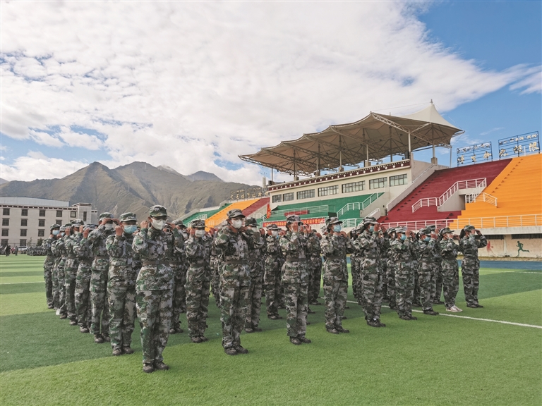 該校學(xué)生工作處主任次仁班旦說:“在校黨委的高度重視下,多次醞釀、精心部署,學(xué)校開展了2021級(jí)新生軍訓(xùn)。我們希望通過軍訓(xùn)增強(qiáng)學(xué)生的愛國(guó)主義意識(shí),增強(qiáng)國(guó)防教育意識(shí),把規(guī)矩、紀(jì)律納入軍訓(xùn)的課程當(dāng)中來,讓學(xué)生守規(guī)矩、學(xué)知識(shí)、學(xué)技能,鍛煉學(xué)生的意志品質(zhì)。”