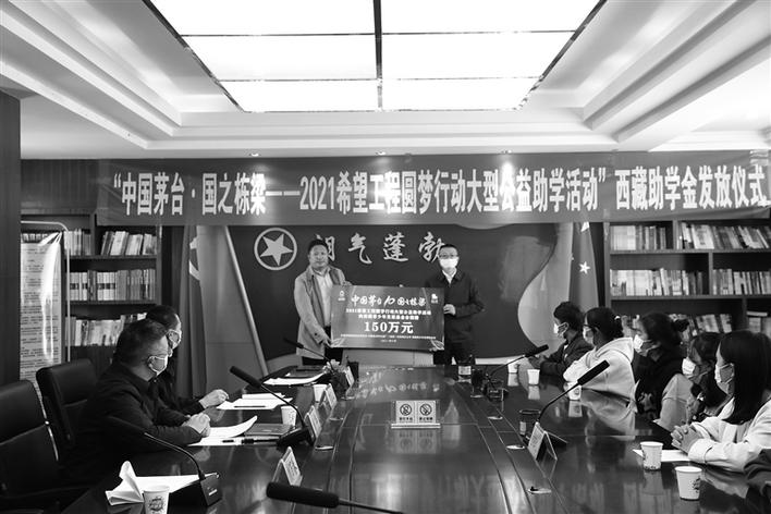 10月25日,共青團西藏自治區(qū)委員會、西藏青少年發(fā)展基金會和貴州茅臺酒廠(集團)有限責任公司在拉薩舉行“中國茅臺·國之棟梁”2021希望工程圓夢行動大型公益助學(xué)活動西藏助學(xué)金發(fā)放儀式。