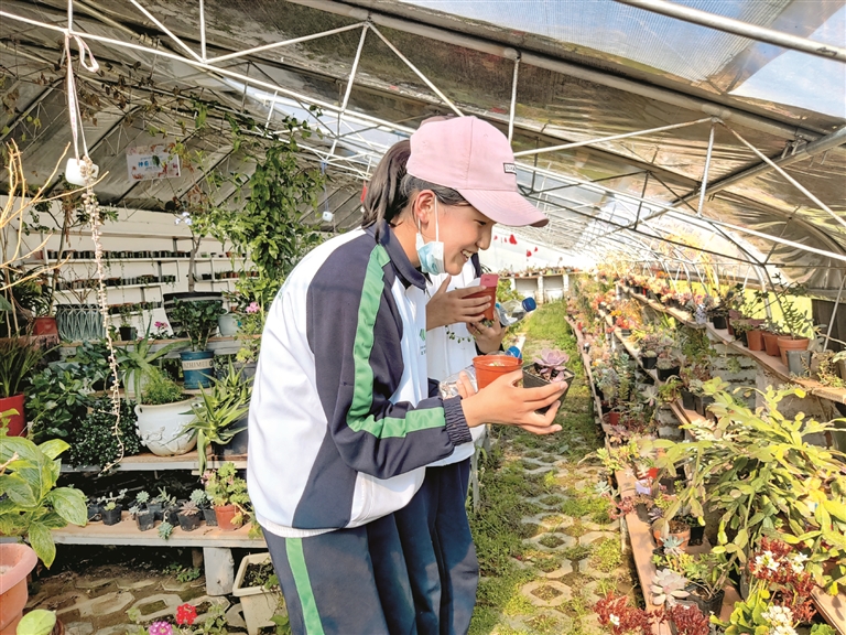 圖為在青少年實踐基地,學(xué)生正在欣賞自己親手種植的多肉植物。 拉薩融媒記者 余洋洋攝