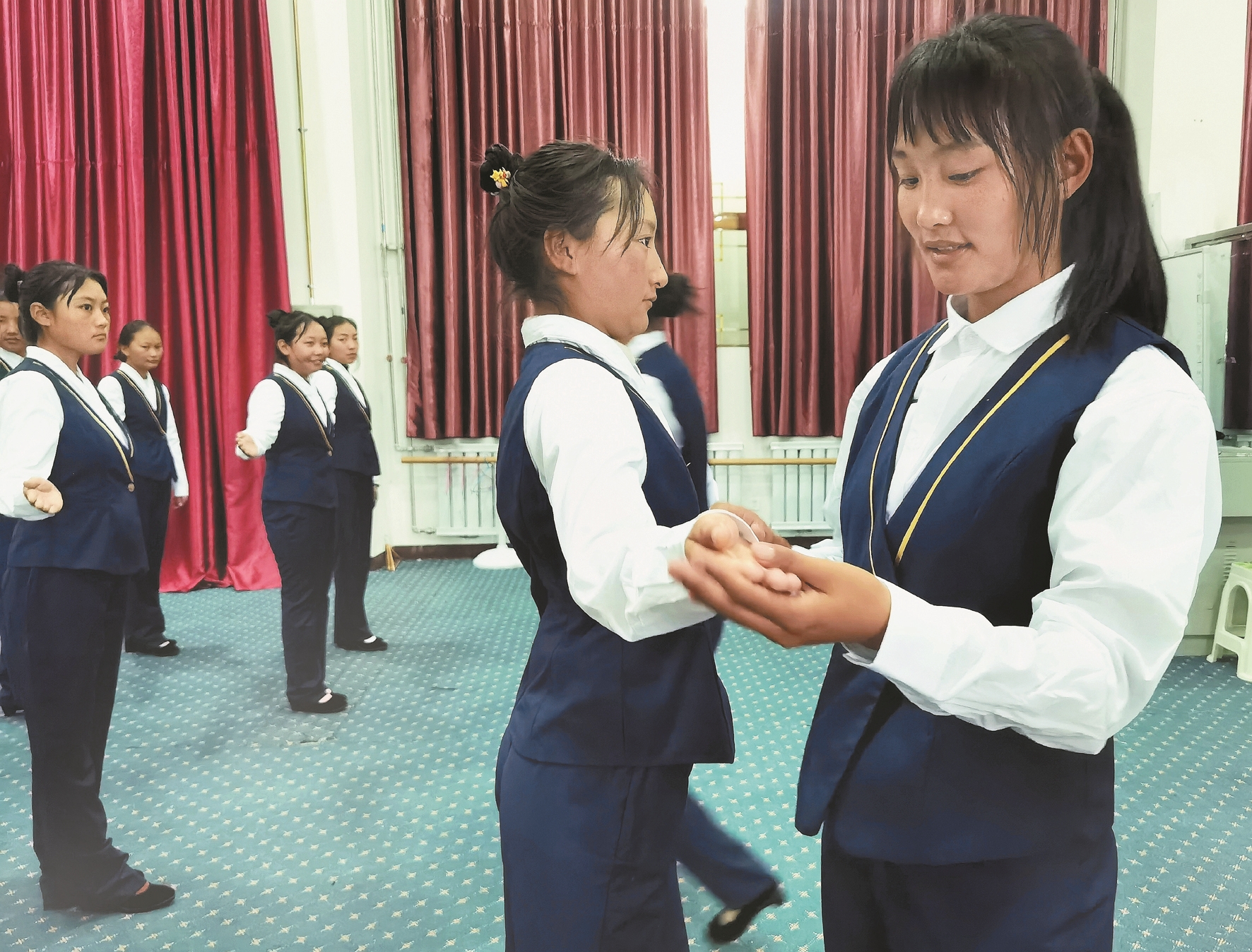 圖為拉薩二職正在對(duì)學(xué)生進(jìn)行服務(wù)業(yè)從業(yè)人員培訓(xùn)。拉薩融媒記者 凃 瓊攝