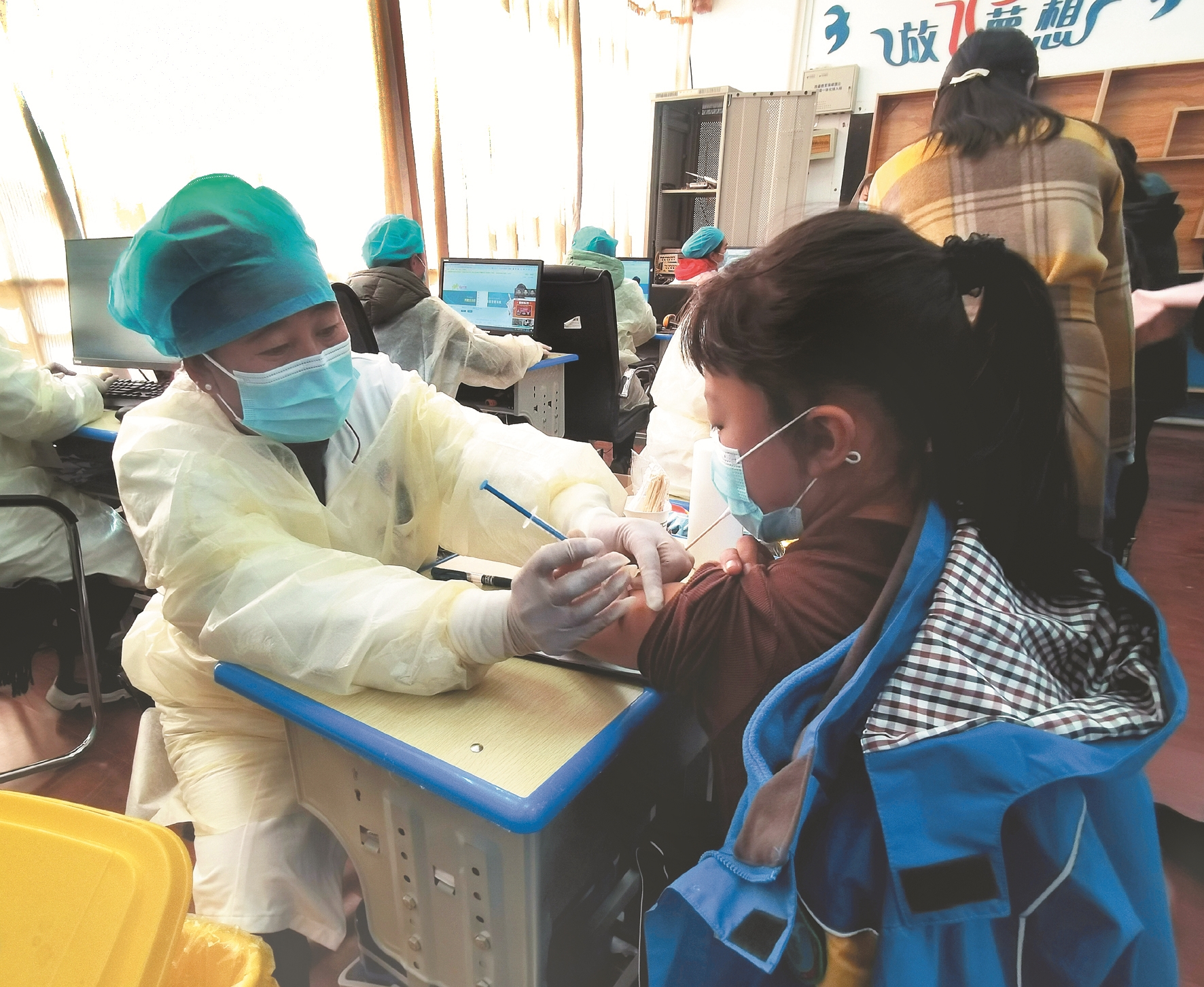 圖為林周縣蘇州小學3至11歲兒童正在接種新冠疫苗。拉薩融媒記者 凃 瓊攝