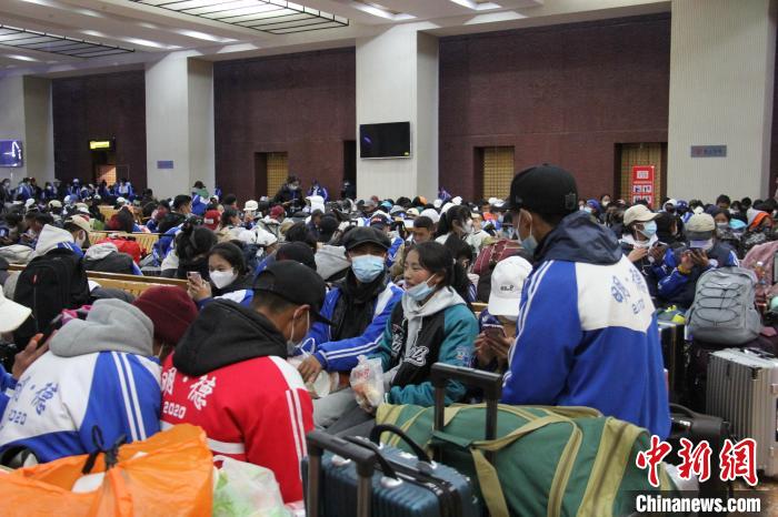圖為準備返鄉(xiāng)的學生在拉薩火車站候車室?!±_火車站供圖