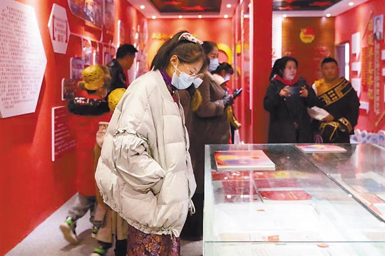 圖為青少年和家長(zhǎng)代表參觀團(tuán)史館。記者 拉巴桑姆 攝