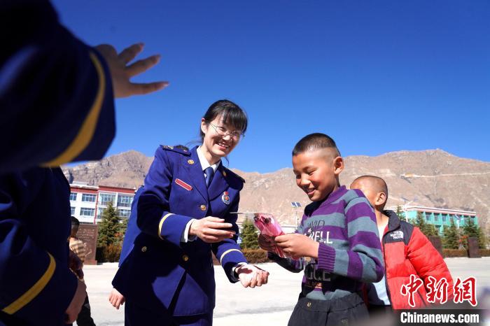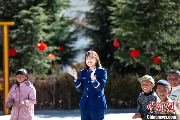 在活動(dòng)中,志愿者們首先與孩子們進(jìn)行了自我介紹,詳細(xì)了解孩子們的生活、學(xué)習(xí)情況。同時(shí),帶著孩子們開展跳繩、丟沙包、短跑等互動(dòng)活動(dòng)。隨后,藏族歌手、總隊(duì)教育宣傳處助理員索朗德吉為孩子們演唱歌曲,在動(dòng)聽的旋律中不時(shí)傳來孩子們的歡聲笑語,其樂融融的氛圍,更是感染著在場(chǎng)的每一個(gè)人。