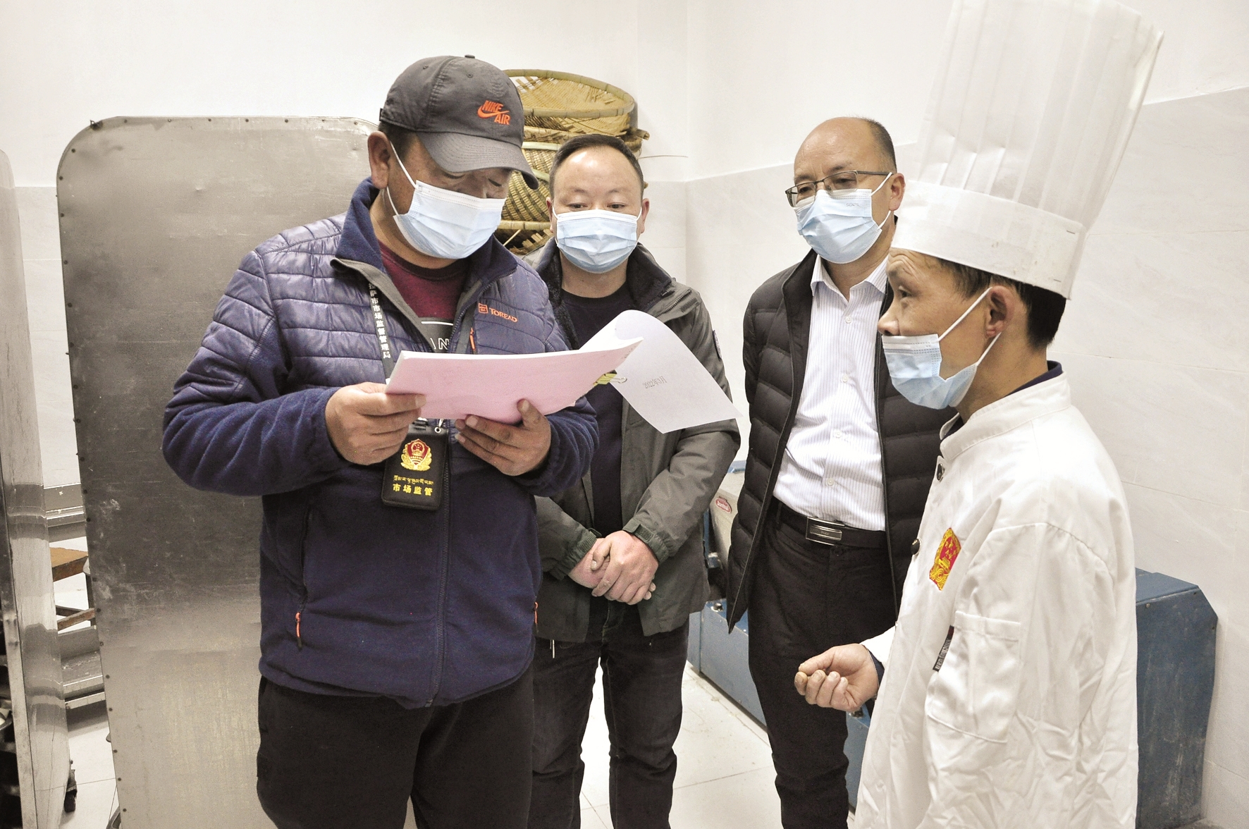 圖為市市場監(jiān)督管理局執(zhí)法人員在對學(xué)校食堂后廚進(jìn)行檢查。拉薩融媒記者 趙耀鐵攝