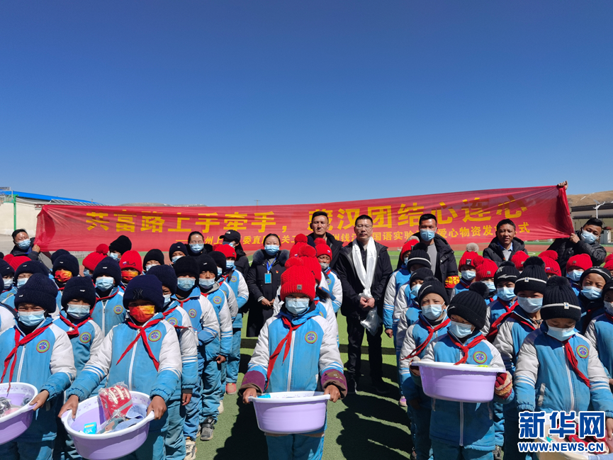 春天來(lái)了,萬(wàn)物復(fù)蘇。18日,位于海拔4800米的那曲市色尼區(qū)洛麥鄉(xiāng)完全小學(xué)的操場(chǎng)上還有冰雪殘留。但排著整齊隊(duì)列的孩子們心里卻暖暖的,臉上露出快樂(lè)的笑容。當(dāng)天,全校500多名學(xué)生每人領(lǐng)到了一份來(lái)自浙江杭州的暖心大禮包:厚手套、防裂膏、保暖耳罩和學(xué)習(xí)用品。