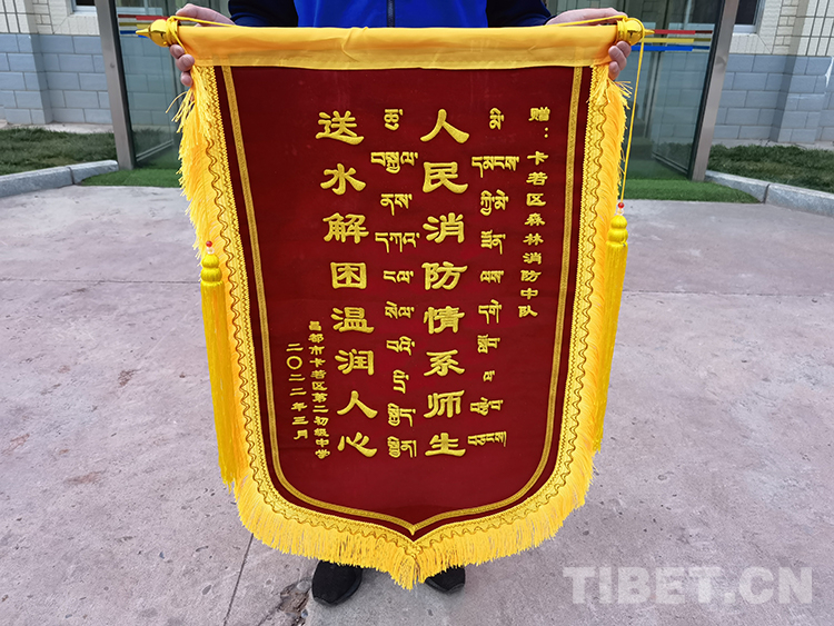 中國西藏網(wǎng)訊 一面錦旗,凝聚著群眾對消防隊(duì)伍誠摯的謝意和真摯的情感。4月1日,西藏自治區(qū)昌都市卡若區(qū)森林消防中隊(duì)迎來了一批“特殊的客人”(昌都市第二初級中學(xué)的師生代表),他們將一面繡有“人民消防情系師生 送水解困溫潤人心”的錦旗贈送給中隊(duì)全體人員,向中隊(duì)全體消防救援人員表示衷心感謝。