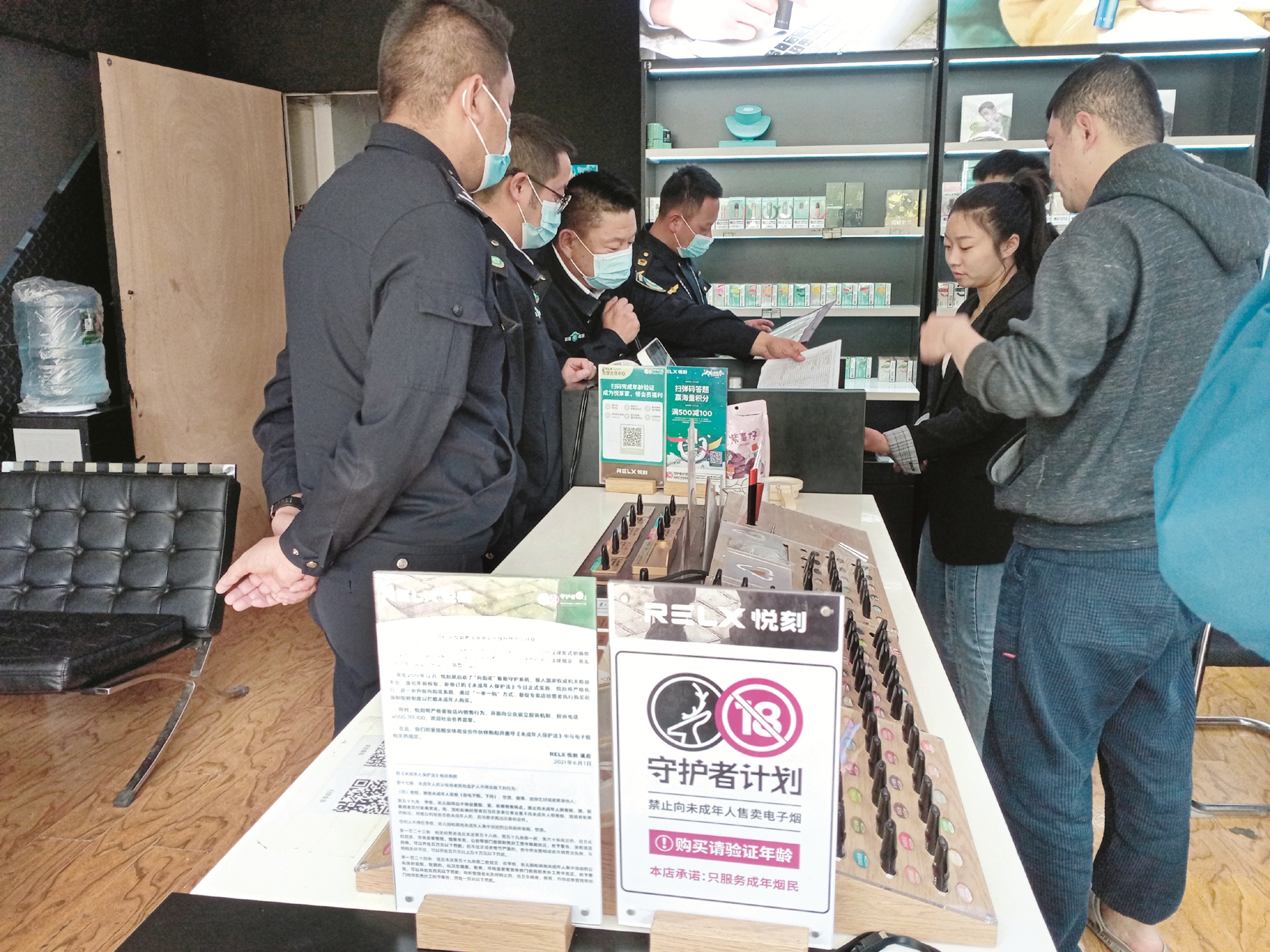4月25日上午,市公安局和市煙草專賣局等四部門工作人員在柳梧新區(qū)聯(lián)合開展了電子煙銷售網(wǎng)點(diǎn)檢查。每到一個(gè)電子煙銷售網(wǎng)點(diǎn),執(zhí)法人員會(huì)詳細(xì)查看銷售網(wǎng)點(diǎn)是否具有相關(guān)經(jīng)營(yíng)資質(zhì)、是否設(shè)立不得向未成年人售賣電子煙警示標(biāo)志以及身份證件核驗(yàn)等規(guī)定落實(shí)情況,并向電子煙經(jīng)營(yíng)者進(jìn)行相關(guān)法律法規(guī)宣傳,告知經(jīng)營(yíng)者嚴(yán)禁向未成年人銷售電子煙。
