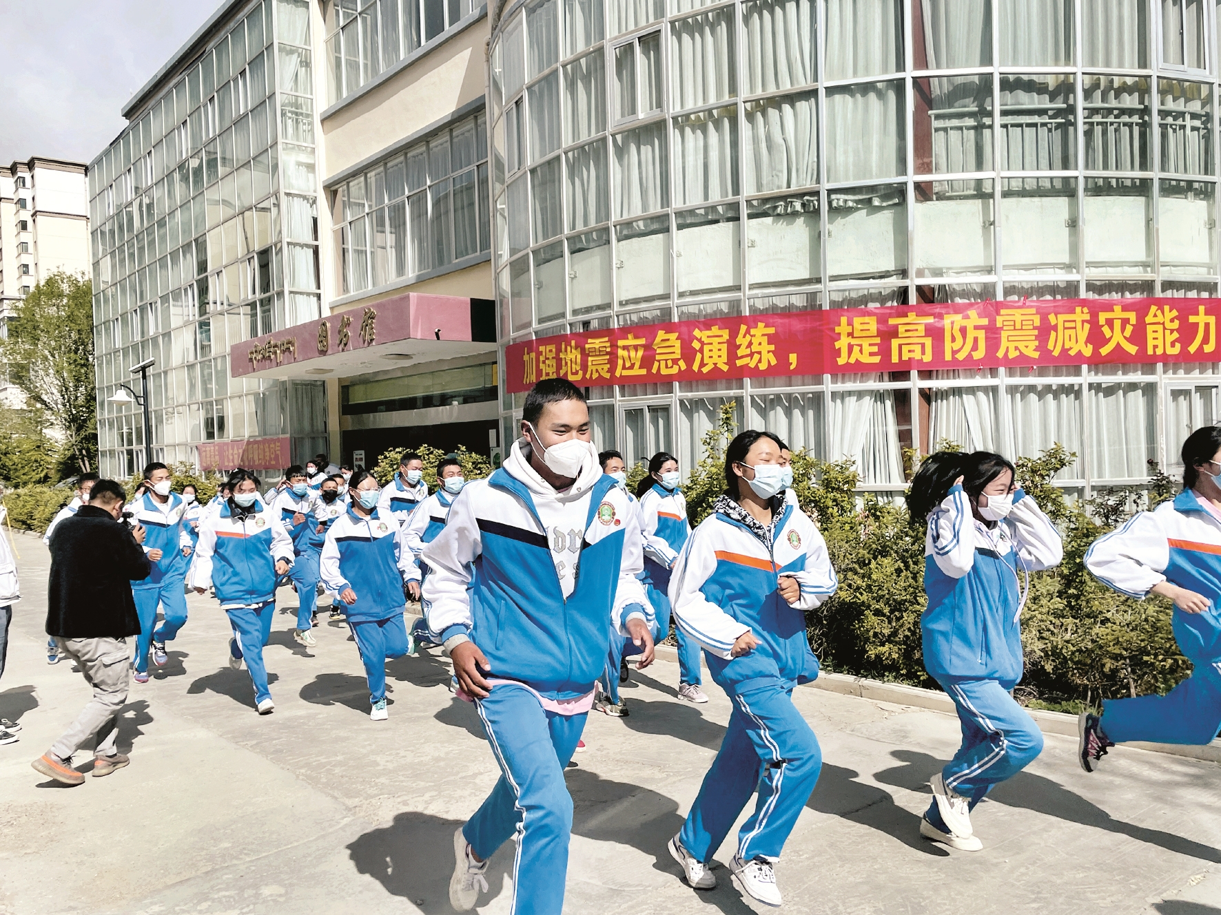 圖為拉薩市第三高級中學(xué)組織在校師生開展地震應(yīng)急疏散演練。拉薩融媒記者 楊 璐攝
