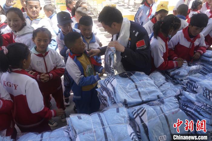 10日,西藏拉薩出入境邊防檢查站聯(lián)合浙江省溫州市永嘉縣東城街道人武部聯(lián)合開展“愛滿邊疆心系教育”公益助學(xué)活動,為拉薩市空港新區(qū)甲日小學(xué)贈送了345套價值4.5萬余元人民幣的校服。