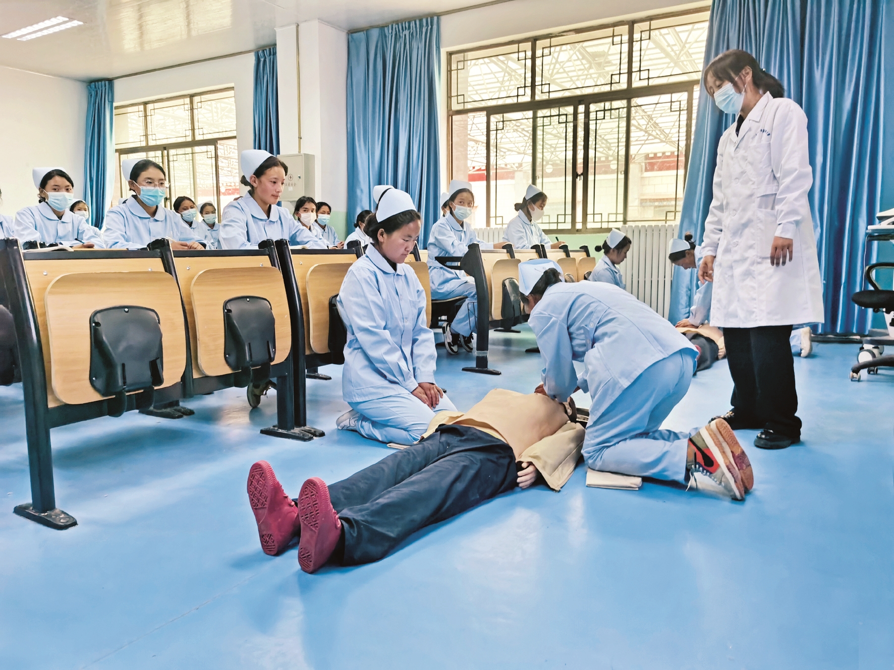 圖為市二職學生在開放課堂內(nèi)進行實操。 拉薩融媒記者 范江英攝