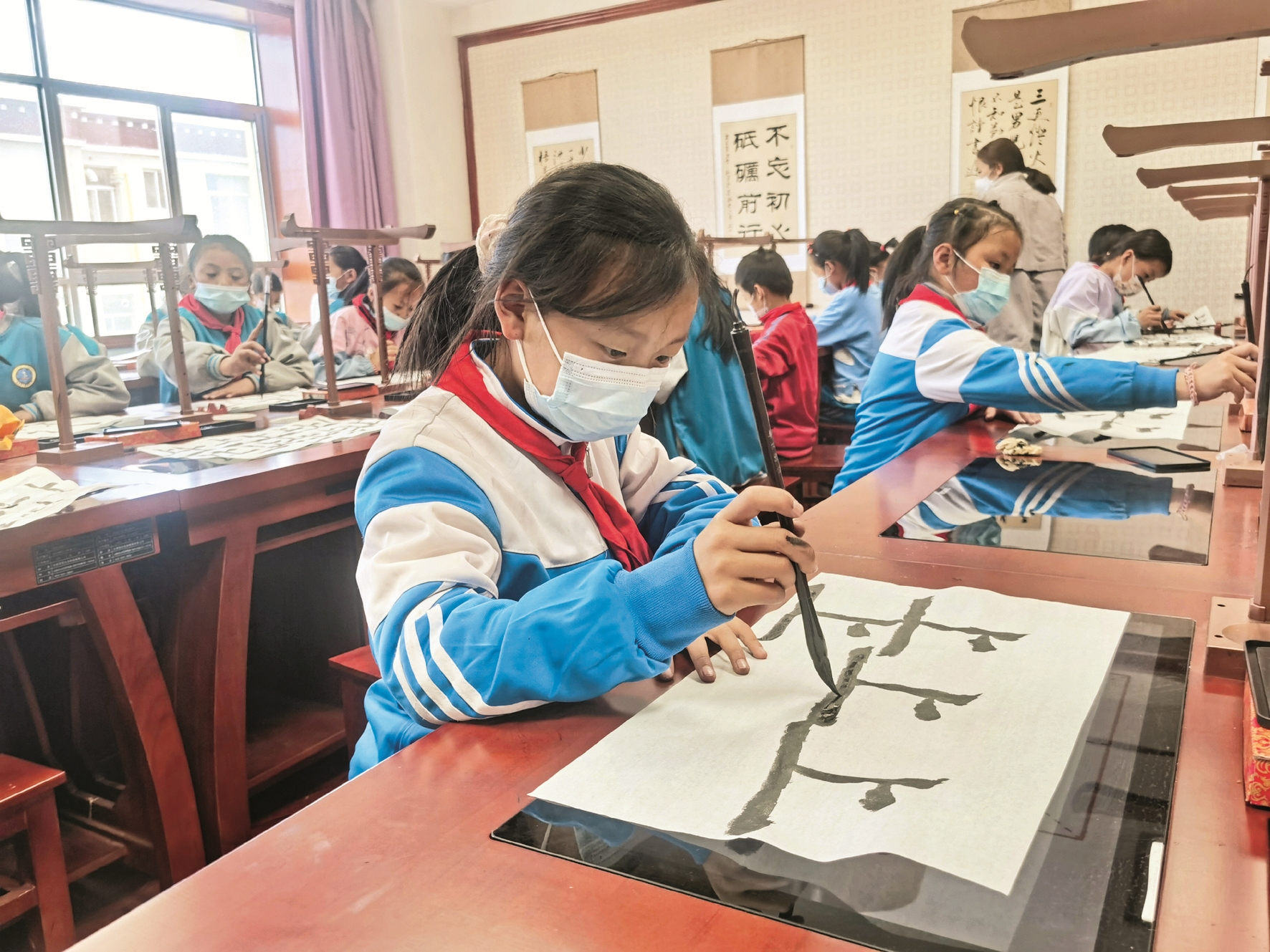圖為智慧書法興趣課堂上學(xué)生們正在練習(xí)書法。 拉薩融媒記者 范江英攝