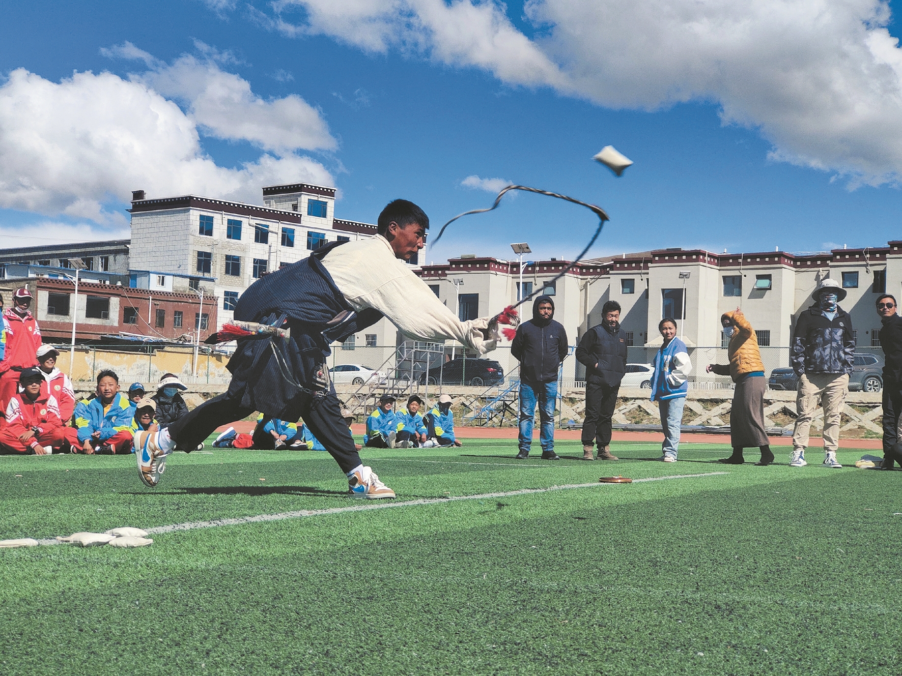活動中,來自全縣中小學(xué)和幼兒園的學(xué)生分別參加了藏漢文書法、朗讀、歌舞、寫作、繪畫等比賽以及羊拐、“吾多”等傳統(tǒng)競技項目。比賽中學(xué)生們熱情激昂、各展身手,一個個朝氣蓬勃的身影、一件件獨具特色的作品,展現(xiàn)著牧區(qū)兒女拼搏上進的精神風(fēng)貌?!拔以诩曳叛虻臅r候經(jīng)常用‘吾多’,沒想到今天能有展示這個技能的機會,非常高興?!薄拔岫唷眳①愡x手白瑪頓旦說。