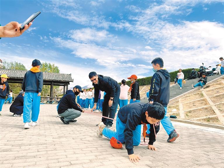 圖為拉薩市第一小學(xué)學(xué)生們?cè)诶蠋煹膸ьI(lǐng)下開(kāi)展戶(hù)外活動(dòng)。