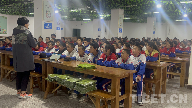 圖為專業(yè)講師為昌都市第二初級中學(xué)學(xué)生講解青少年自我保護、兒童權(quán)益維護知識