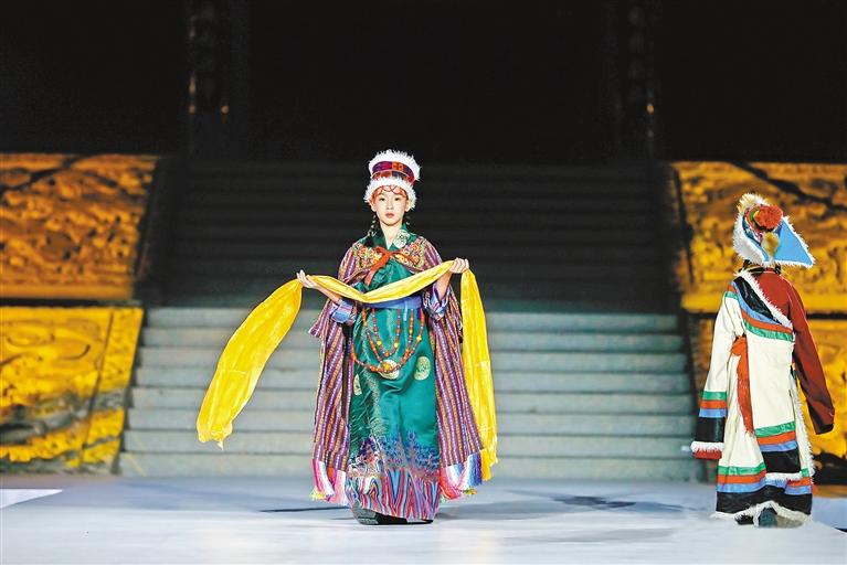 塔耶梅朵美育培養(yǎng)中心的學(xué)員展示藏族特色傳統(tǒng)服飾。