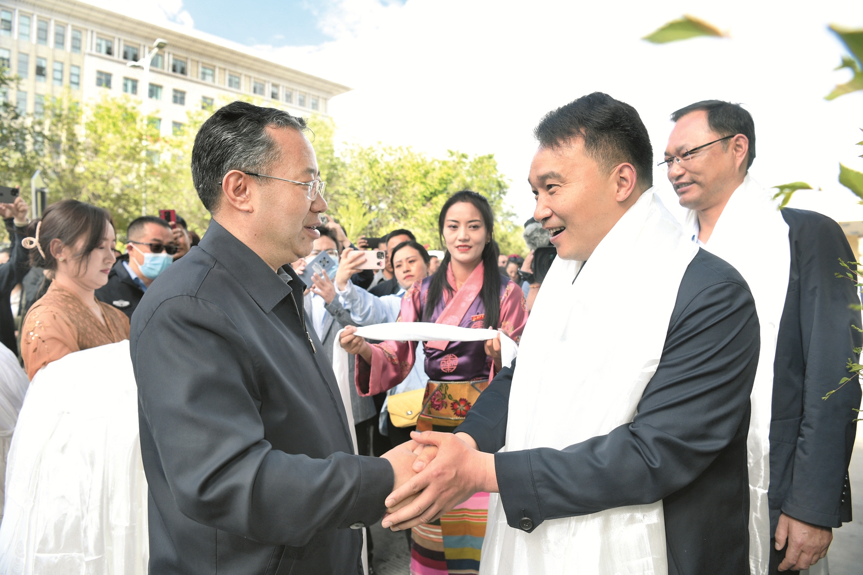 區(qū)黨委常委、市委書記普布頓珠,以及果果、陳靜、尼瑪、李忠海、普衛(wèi)東、張定成、王慧、張春陽等拉薩市黨政軍領(lǐng)導(dǎo)和市(直)各單位、各縣(區(qū))干部職工自發(fā)來到援藏干部人才駐地、機(jī)場,為即將離藏的江蘇省援藏干部人才送行,向大家獻(xiàn)上潔白的哈達(dá),祝福他們一路順風(fēng)、身體健康、工作順利、扎西德勒。