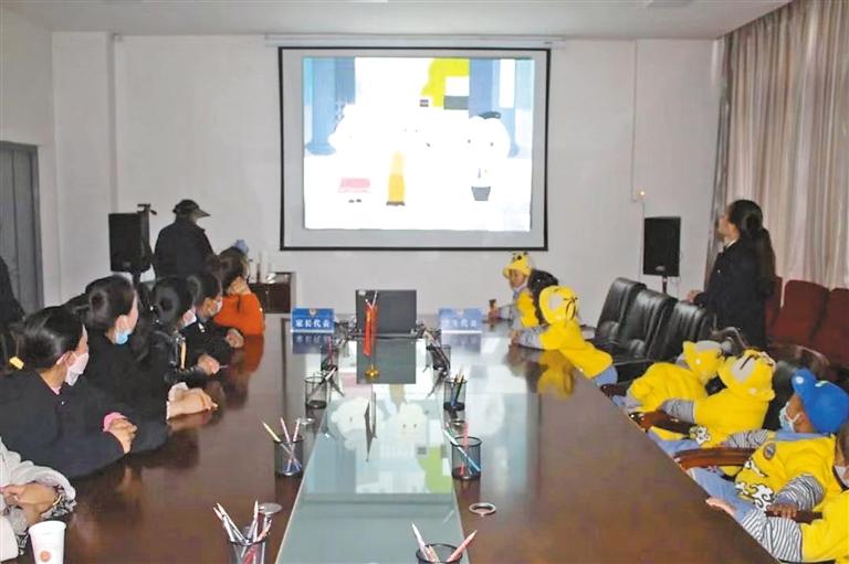 圖為色尼區(qū)人民檢察院通過多媒體法律講堂向幼兒和家長(zhǎng)代表播放《中華人民共和國家庭教育促進(jìn)法》。記者 萬靖 攝