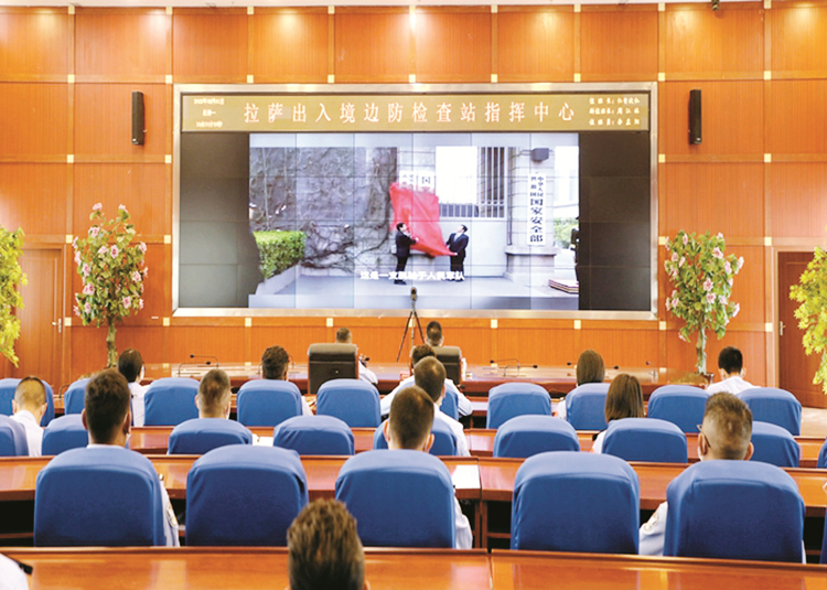 圖為該檢查站民警職工集中觀看“思政云課堂·老兵永遠跟黨走”主題宣講。(拉薩出入境邊防檢查站供圖)