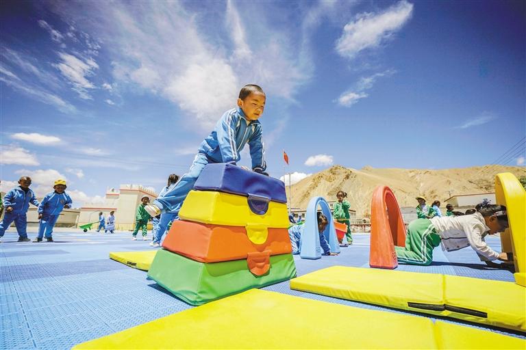 “新操場(chǎng)是我們的游樂(lè)場(chǎng)。”六歲的旦增次央第一次見(jiàn)到新操場(chǎng)時(shí)開(kāi)心極了,“在新操場(chǎng)上可以跑可以跳,還有好多新玩具,太好玩了!”