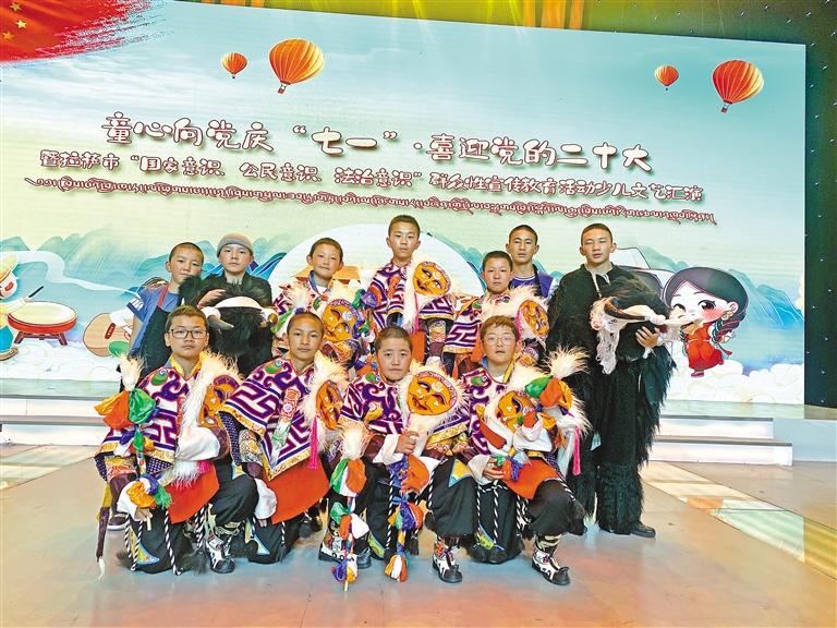 娘熱小學藏戲興趣班的孩子參加拉薩市相關演出活動。