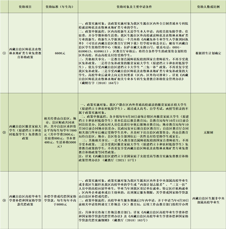 以下為西藏自治區(qū)本??平逃A段學生資助政策簡介和服務(wù)熱線詳細情況: