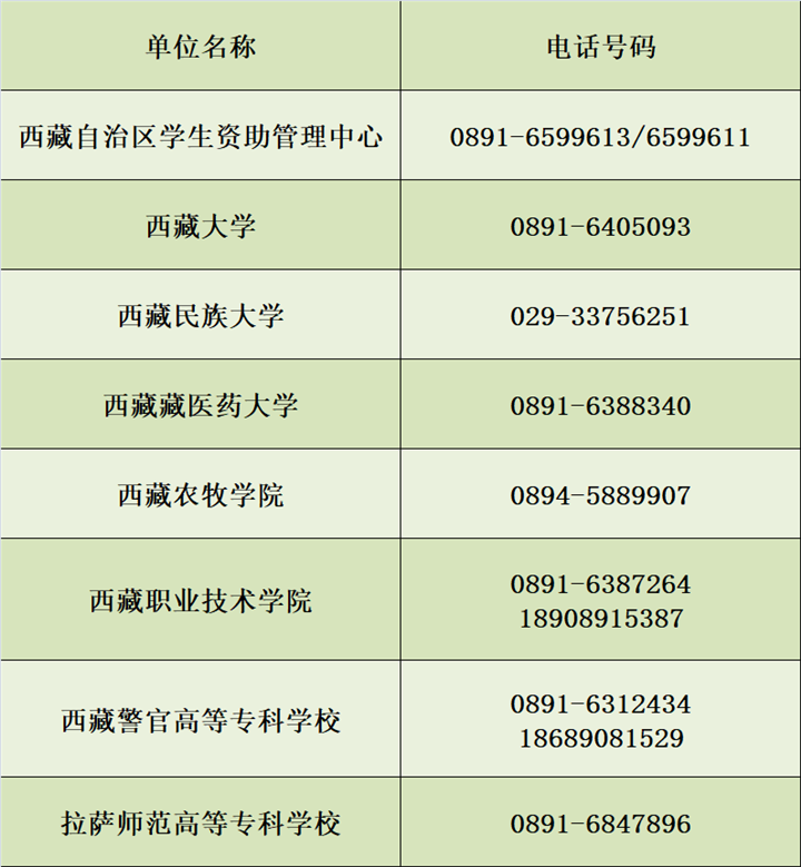 西藏自治區(qū)學生資助服務(wù)熱線號碼