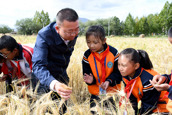 在西藏自治區(qū)日喀則市上海實(shí)驗(yàn)學(xué)校,有一系列以青稞為主題的多彩課程:春耕、秋收季節(jié),孩子們走進(jìn)田間地頭,親手播種、收割糧食,觀察農(nóng)耕機(jī)運(yùn)作,感受現(xiàn)代農(nóng)村生產(chǎn)方式的變革;在教室里,班主任結(jié)合當(dāng)?shù)厍囡a(chǎn)業(yè)的發(fā)展故事,講述脫貧攻堅和鄉(xiāng)村振興的歷程;今年7月,師生們還走進(jìn)剛建成的青稞博物館,聆聽農(nóng)學(xué)家尼瑪扎西講授關(guān)于青稞的歷史文化知識。