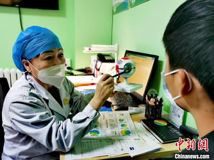 圖為青海省一醫(yī)療機構眼科專家向患者講解近視問題?!?zhí)砀!z