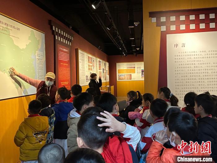 圖為活動當(dāng)天西藏文化博物館的志愿者們帶領(lǐng)小朋友參觀館內(nèi)展覽。 李晗雪 攝
