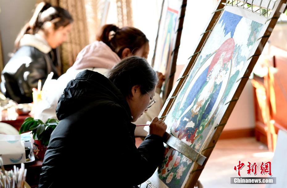 隨著經(jīng)濟(jì)社會的發(fā)展,在對非物質(zhì)文化遺產(chǎn)傳承越來越重視的背景下,也有了越來越多的西藏女性學(xué)習(xí)唐卡繪畫。她們在實現(xiàn)自己夢想的同時,也為民族文化的傳承與發(fā)展貢獻(xiàn)著“巾幗力量”。圖為3月8日,西藏唐卡畫院內(nèi)正在繪制唐卡的女學(xué)生。
