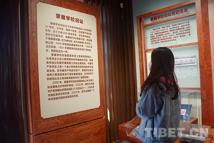 舊址西院,“蒙藏學(xué)校舊址專題展”主要展示舊址歷史沿革和革命活動,蒙藏學(xué)校學(xué)生參加五四運動;李大釗、鄧中夏、趙世炎等對蒙藏學(xué)校青年的馬克思主義啟蒙和革命引導(dǎo);烏蘭夫、多松年 等 蒙藏學(xué)校進步青年參加校內(nèi)外革命活動……突出展現(xiàn)中國共產(chǎn)黨成立后在這里組織開展革命斗爭的歷史。“中華一脈 同心筑夢”主題展分為“共同締造新中國”“團結(jié)建設(shè)新社會”“攜手奮斗繁榮路”“同心奮進新時代”4個部分。展出照片420多幅,實物、文獻、檔案280余件,藝術(shù)展 項 18項,重點展示新時代民族工作取得的新的歷史性成就。