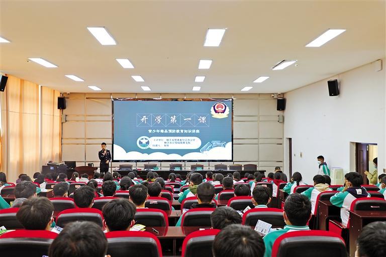 一堂“交通安全”課、一堂“禁毒知識”課、一堂“法治教育”課……活動中,民警們通過播放視頻、以案說法、現(xiàn)場演示等多種教學(xué)形式,用通俗易懂的語言,直觀生動的講解,熱烈輕松的互動,為同學(xué)們送上法律知識、交通安全、禁毒、反詐等“知識大禮包”。