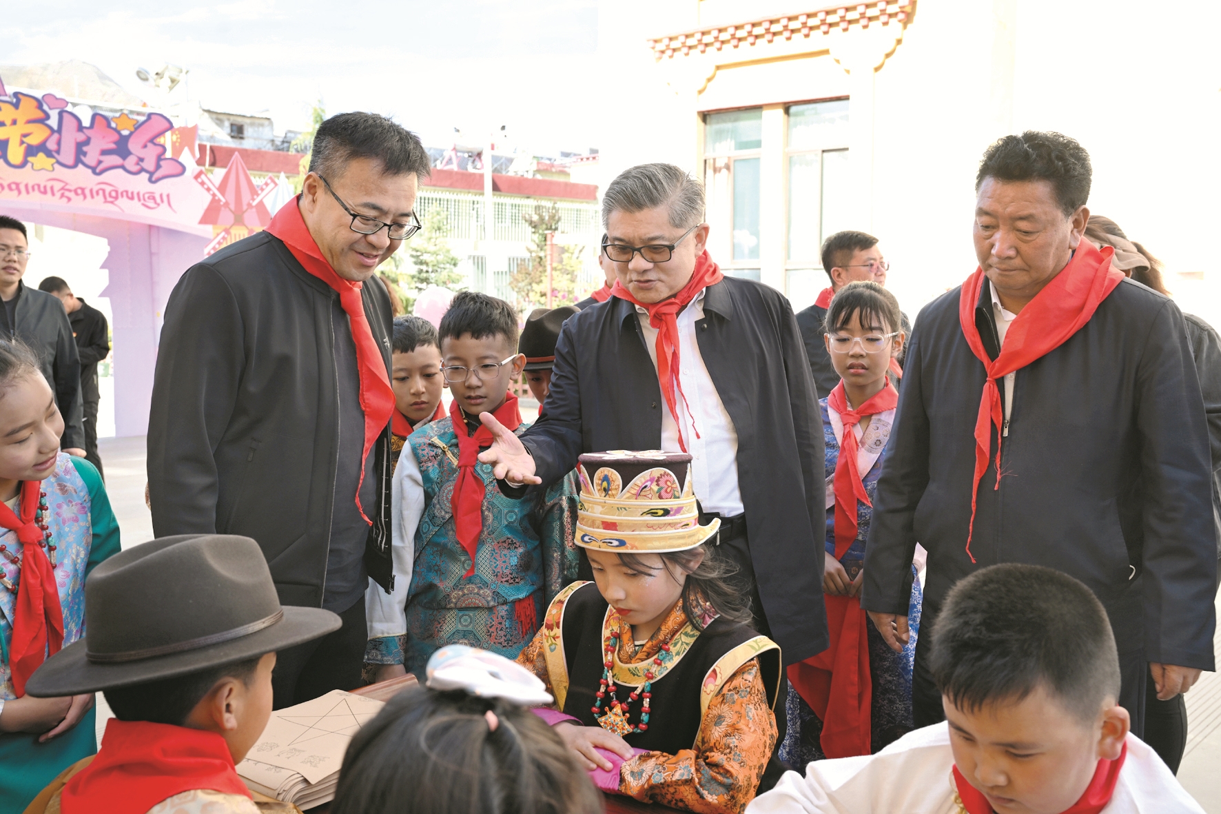夏日的拉薩陽光明媚,操場上,孩子們正在開展“六一”兒童節(jié)文藝匯演活動,王強一行興致勃勃地觀看演出,對孩子們積極向上、充滿活力的精彩表演連連鼓掌,向孩子們送去了節(jié)日的祝福,希望大家牢記習近平總書記的囑托,勤奮學(xué)習、掌握本領(lǐng),努力成為新時代社會主義建設(shè)者和接班人。希望廣大教師要牢記為黨育人、為國育才使命,引導(dǎo)他們扣好人生第一??圩?,努力培養(yǎng)有理想、有道德、有文化、有紀律的時代新人。