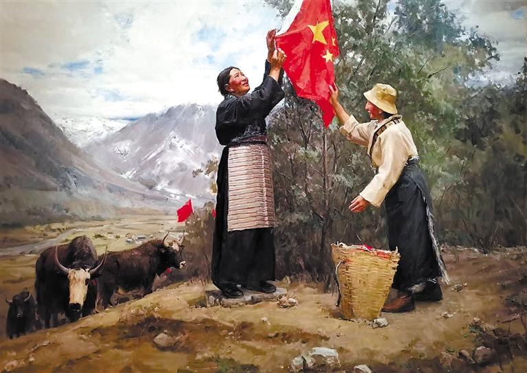 隨著一系列支持政策的持續(xù)推進(jìn)和西藏各族兒女的團(tuán)結(jié)奮斗,西藏的經(jīng)濟(jì)發(fā)展和民生水平都得到了大幅度提升。同時(shí),關(guān)注西藏發(fā)展現(xiàn)實(shí)、進(jìn)行美術(shù)創(chuàng)作的藝術(shù)家日漸增多,一件件優(yōu)秀美術(shù)作品應(yīng)運(yùn)而生,并且在全國(guó)重要展覽中精彩呈現(xiàn),向人們?nèi)?、立體地展現(xiàn)了新時(shí)代西藏人民生活的美好圖景。2022年秋季在中國(guó)美術(shù)館展出的“第13屆中國(guó)藝術(shù)節(jié):全國(guó)優(yōu)秀美術(shù)作品展覽”中,有大量表現(xiàn)西藏民族風(fēng)情和民生發(fā)展題材的美術(shù)作品,從作品構(gòu)思到藝術(shù)表現(xiàn),體現(xiàn)出鮮明的民族文化特色和民生繁榮景象,展現(xiàn)出美術(shù)創(chuàng)作者深植心底的鑄牢中華民族共同體意識(shí)創(chuàng)作理念。
