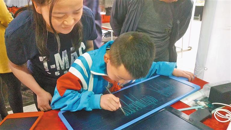 圖為小學(xué)生在次仁多吉設(shè)計的電子寫字板上書寫藏文字母。見習(xí)記者 武沛濤 攝