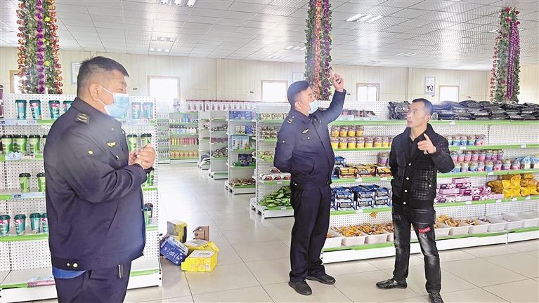 為拉薩市市場監(jiān)管局執(zhí)法人員在學(xué)校附近的商超進行檢查。記者 央金 攝