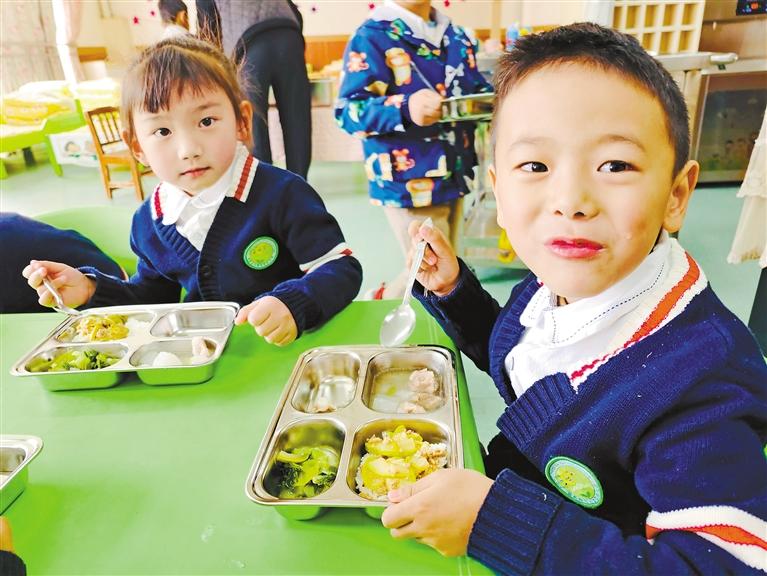 為西藏自治區(qū)實驗幼兒園幼兒在吃午餐。記者 央金 攝
