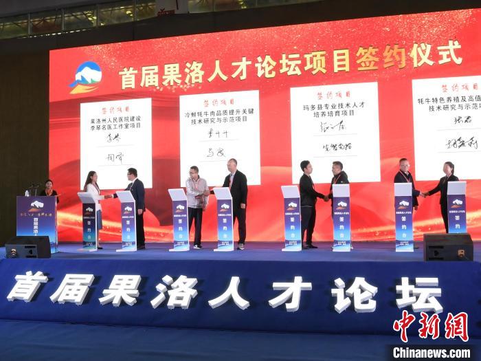 圖為首屆果洛人才論壇項目簽約儀式現(xiàn)場。果洛州委宣傳部供圖