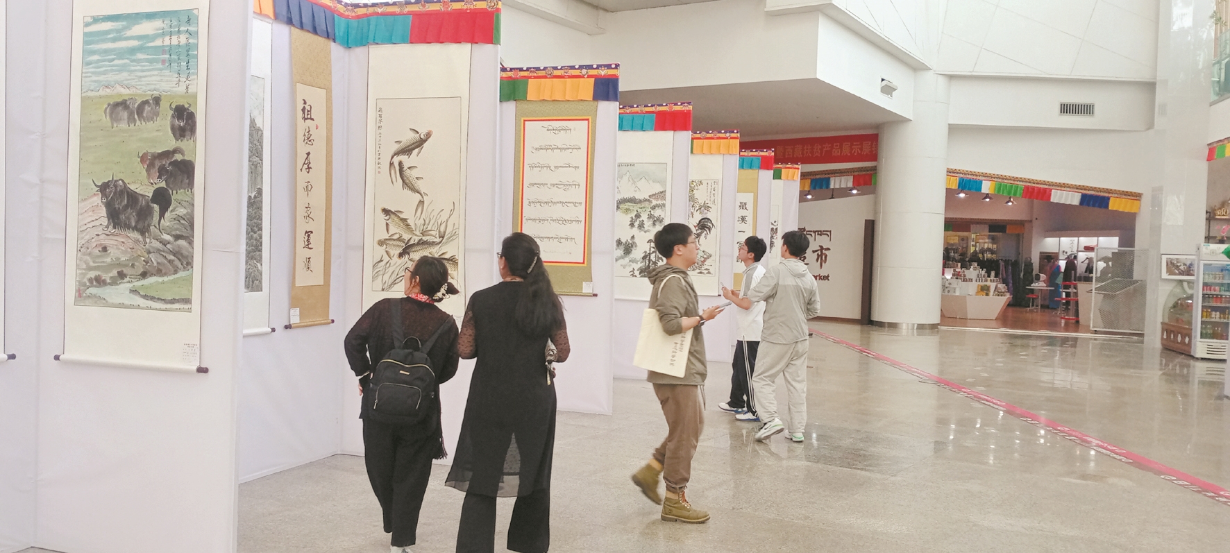 圖為市民在觀看書(shū)畫(huà)展。 拉薩融媒記者 齊永昌攝