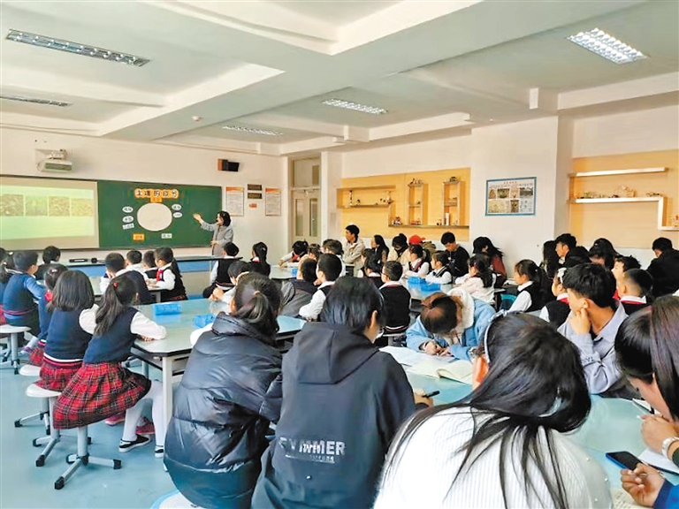 圖為學(xué)生參加實(shí)驗(yàn)教學(xué)。